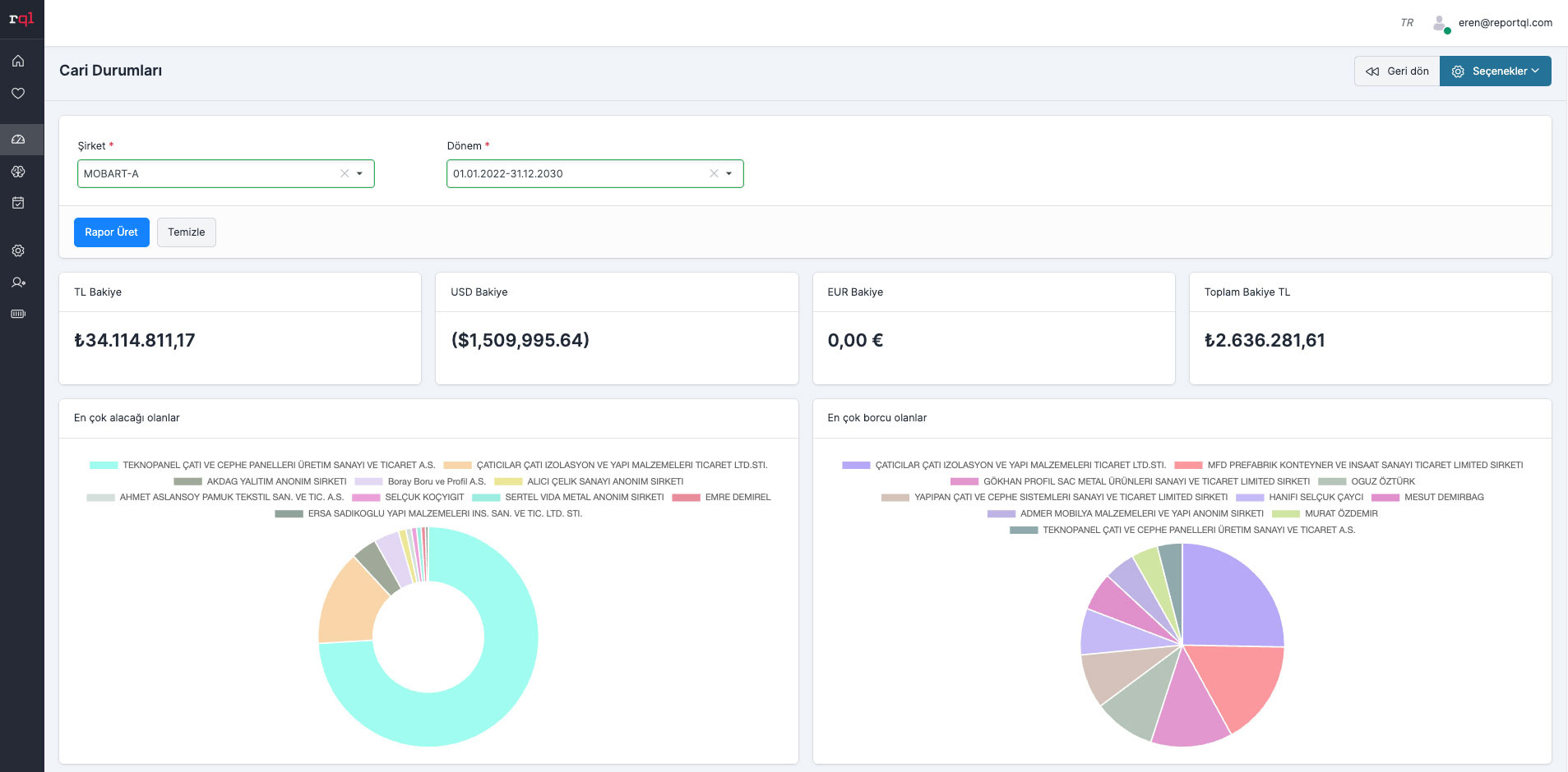 Reportql ile tablolar, grafikler, pivot tablolar ve detaylı dashboardlar gibi çeşitli raporlar oluşturabilirsiniz. Ayrıca, raporlarınızı özelleştirerek arayüzü istediğiniz gibi düzenleyebilirsiniz.